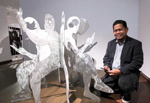 CINTA KASIH 19 March - 19 April. Sculpture depict everyday interaction between man an gadget The Star StarMetro Wednesday 13 March 2019 pg 8. Pameran solo kedua artis seni tempatan Aznan.