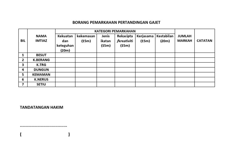 Borang Pemarkahan Pertandingan Gajet Pdf